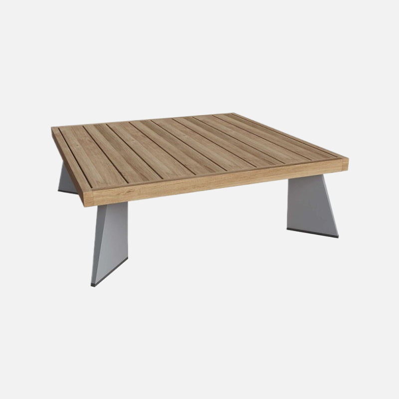 Elevate your outdoor space with the Oxford Platform Square Table, a stylish addition to the Oxford Deep Seating Set. This table combines a machine-crafted aluminum frame with solid teak wood, making it an ideal choice for enduring outdoor use.