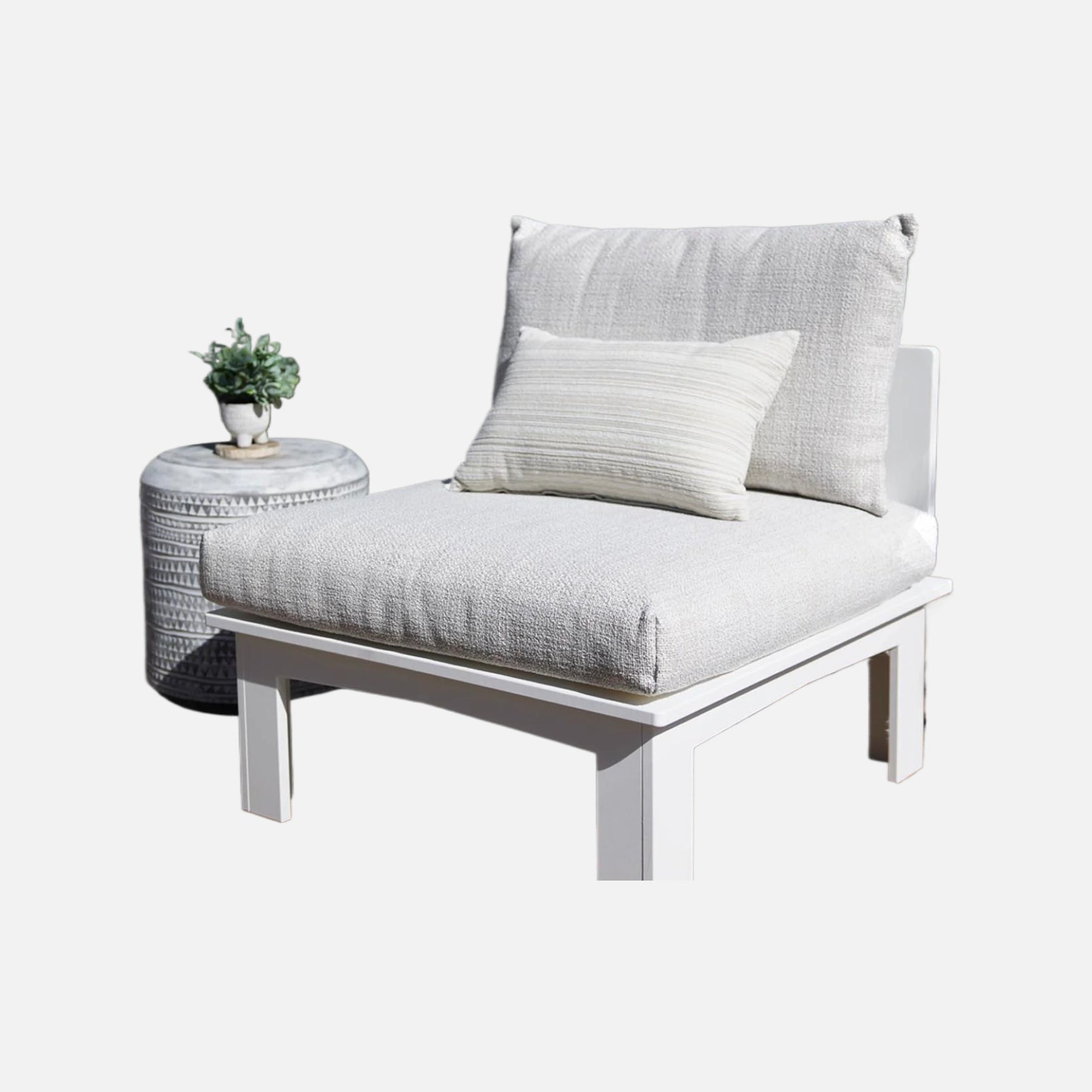The Mainstay Sectional Middle, comprised of a pre-assembled base and two-piece cushion set, can be paired with other Mainstay Sectional pieces to create infinite arrangements or used on its own.